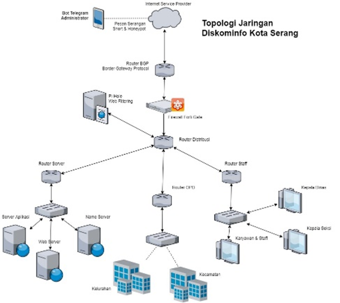- Collecting the required data and information about the network topology description in the Serang City Communication and Information Technology through interviews and direct observations in the field
