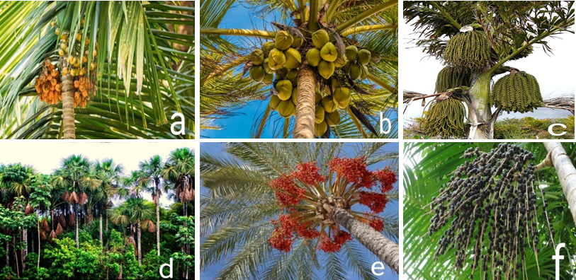 The Arecaceae, also known as the Palm family (palmeae), is one of the most well-known plant families [7] (Figure 2). This family belongs to the monocot order Arecales of flowering plants [8]. It has 181 genera and 2600 species and it is one of the largest families in the world. Bush species, woody trees or even grasses are examples of the physical and functional diversity among this family's species. It is primarily found in tropical regions [9]. Species of this family are mostly present in Indonesia, Malaysia and Thailand [9-11].