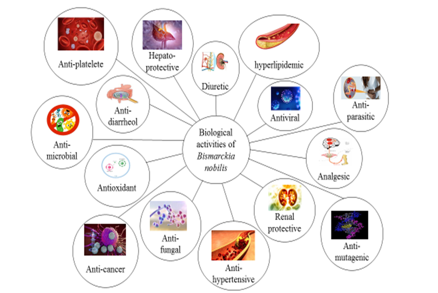 Herbal tea made from Hyphae thebaica is historically thought to be effective in treating hypertension [17]. Hypertension is treated with a decoction of the leaves of the Acrocomia aculeata plant [18].