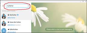 Select @BotFather then press START to start creating a Telegram Bot (Figure 8).