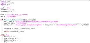 We need files with a programming language to connect Telegram Bot with NIPS Server and Honeypot. Researchers use the python programming language to integrate Telegram Bot with our Server. The code example is as follows (Figure 12).